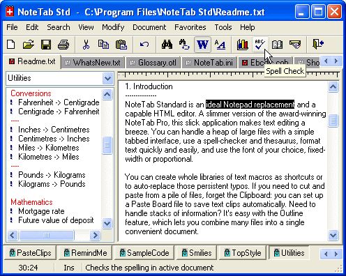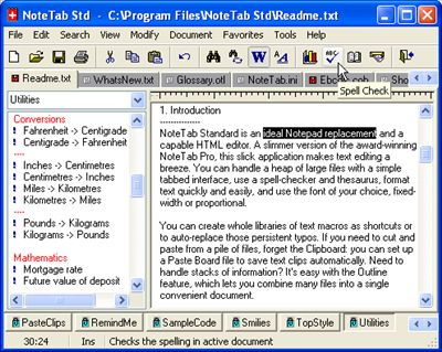 of NoteTab Standard: