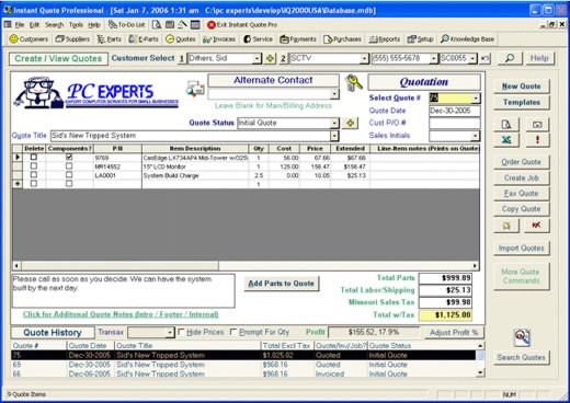 Instant Quote Professional (Our Professional Quoting Package) is a feature rich software application designed for any business that requires quotes and invoices, allowing you to easily create quotes and invoices in seconds! Supports US, Canadian, VAT and Australian GST systems. Features include quote form, invoice form, Excel?-based Quote/Invoice/Purchase Order with formulas, Built-in Contact Management, powerful ability to Track / Archive Customer's File Folders, Receipt Printer Invoice and Job Check-In Receipt, Product Label printing with barcodes, export Invoice detail for importing into accounts, import Quotes from laptop, proposal generation, inventory control, serial number tracking, Job tracking, inventory control, RMA tracking, weight tracking, quantity discounts, transaction charges, To-Do List, bulk e-mail wizard, searchable knowledge base, faxing, Secondary Currency, UPC Codes, Purchase Orders, emailing and much, much more! |