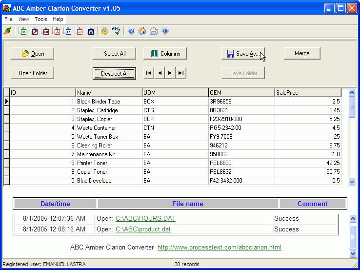 ABC Amber Clarion Converter screenshot: