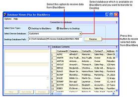 View and sync Microsoft Access, Excel, Foxpro,Oracle, SQL Server or any ODBC enabled database on BlackBerry.Update data on BlackBerry. Make a phone call from transferred database. Features: Supported Databases: MS Access, MS Excel, Oracle, SQL Server, FoxPro, dBase, and Any ODBC Compliant Database. View and sync any database with BlackBerry. Modify database contents on BlackBerry and reflect them to database. Make a phone call for the selected field's numeric contents, which will be treated as a phone number. Apply Filters, Sort the fields. Apply any SQL Select queries on database to purify records. Export database records to text files with or with out field names. View database tables: all at the same time or one record at a time. Find and Find again option to search a record. Perform Cut/Copy/Paste Edit operations in Grid View using the shortcut keys. Easy navigation through database in both Record and Grid view using shortcut keys. Create new database on BlackBerry. Import BlackBerry side database to Desktop as .csv file. Manage database in different categories. Perform operations such as Sum, Average, Minimum, and Maximum on column with numeric data. Import Record/Field data to Memo pad. Manage database in different categories. For BlackBerry Pearl , Open Email Client for Selected Field/Record. Create different views on BlackBerry by applying Filter/Sort/Field Selection. |