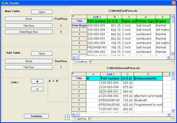 If you work with electronic worksheets, you often need to merge several worksheets into one. For example, when you have to compare price lists from different suppliers providing the same goods or put together information from several small worksheets into a big one. Even if the amount of data is not large, this work is boring and needs much time, efforts and attention. XL Fusion is used for merging several electronic worksheets into one automatically. |