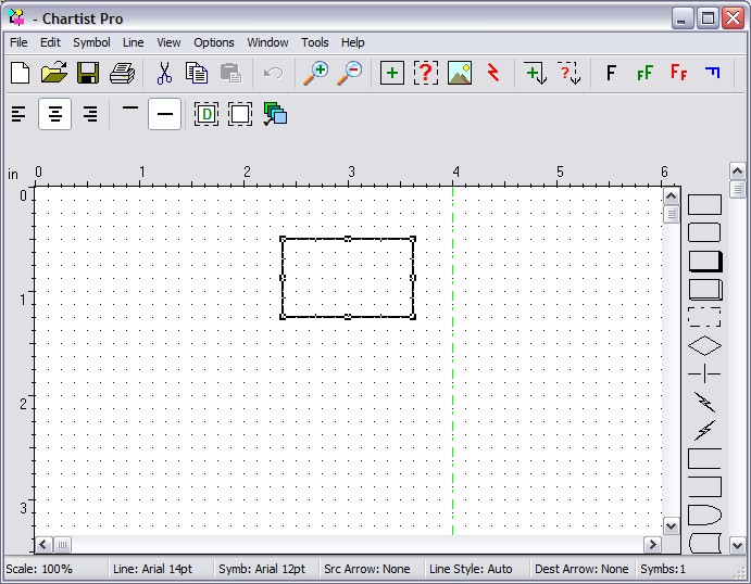 Chartist is an interactive flowchart application. With Chartist you can create, edit, and print flow charts, organization charts, or other charts that use similar components. Through the use of the Windows Clipboard, you may also paste all or part of the charts you create into other documents, providing the application can read Clipboard bitmaps or metafile pictures. Chartist supports the OLE feature of Windows, allowing other applications to link or embed Chartist information. Supports multiple documents. Data may be exchanged among Chartist documents, using the Clipboard or drag and drop. Chartist supports the text, graphics and color capabilities of your display and printer. Text in a Chartist document may use any number of the fonts available from your printer. A Chartist document is one or more pages in size. The orientation of pages depends upon the settings for your printer. Within a Chartist document there may as many as 4000 symbols. A symbol is a polygonal shape with optional text or graphics inside it. The text inside a symbol may be in any of the fonts available from your printer. Multiple fonts may be used for the text inside a symbol. Lines may be drawn between symbols. The lines are routed automatically, with influence from the user as to symbol entry and exit points. Lines may be drawn with or without arrowheads, in different thicknesses, with solid, dotted or dashed pen styles, and with three different routing styles (straight, curved, square turns). When symbols are moved around the document, any associated lines are rerouted and redrawn as necessary. Lines may also be labeled with text. |