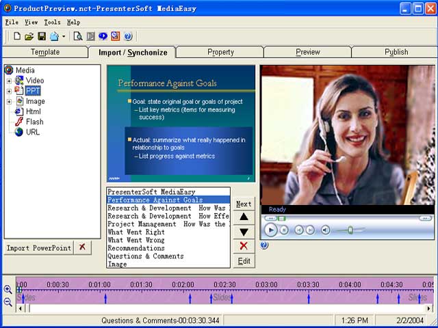 content. PresenterSoft MediaEasy supports both Real and Windows Media