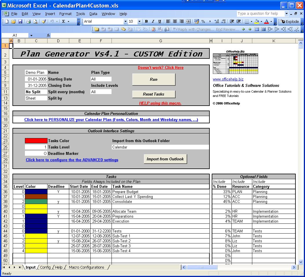 workbook HAS NO MACROS on it, just the resulting calendar. Change, save and