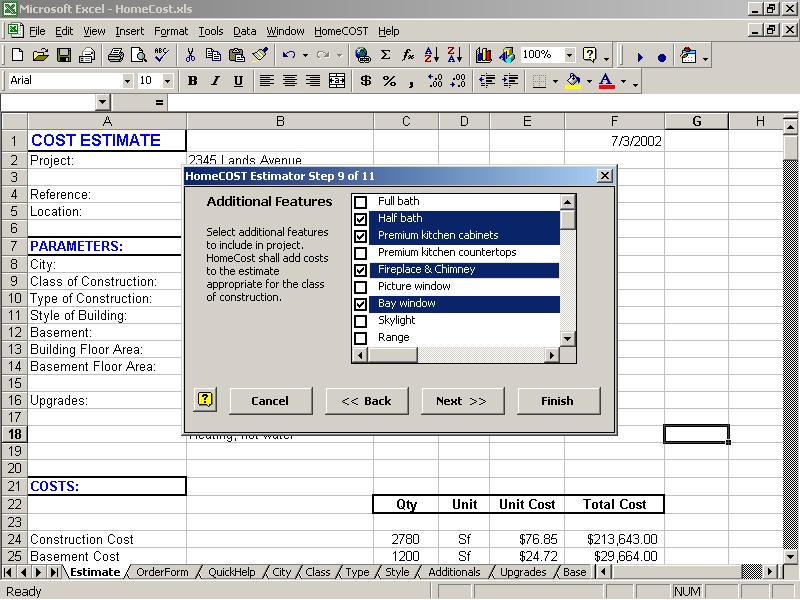 Create fast and accurate home construction and valuation estimates with ease. Home Construction Cost Estimating System. Designed for builders, contractors, architects, real estate professionals and insurance adjusters. With built-in modifiable data for local city indexes, class of construction, type and style factors, typical upgrade and additional feature prices and selections made using a wizard interface, HomeCOST Estimator is an indispensable tool for creating fast and accurate home valuation estimates. HomeCOST Estimator consists of several worksheets containing user modifiable cost indexes, factors and cost data. You can easily access and modify built-in data and add rows of new data to customize the system for an individual business and geographic area. HomeCOST Estimator is an ideal sales tool for preparing instant budgets and quotations based on client specifications. For construction budget development, with repeated "what-if" type analysis, it is easy to pin down the best combination of funds versus value. Insurance adjusters use HomeCOST Estimator for calculating replacement values for claims. Easily customizable for local factors, HomeCOST Estimator is a comprehensive, time-saving, productivity tool for quick claim estimates. HomeCOST Estimator is designed and developed in the USA by CPR International, Inc., a leading provider of cost estimating tools and cost data to the construction industry since 1986. Use HomeCOST Estimator with confidence and profit! |