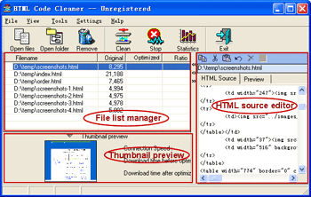 Code Cleaner is intended to optimize HTML documents, resulting in shorter