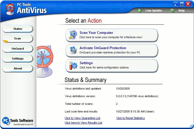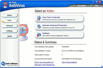 of PC Tools AntiVirus: