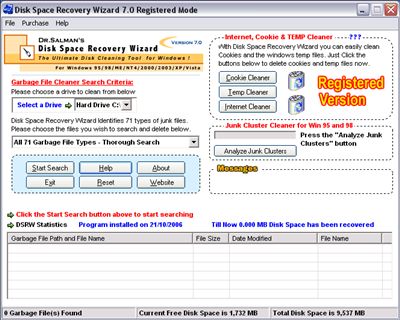 Disk Space Recovery Wizard is a Garbage and Junk File Cleaning