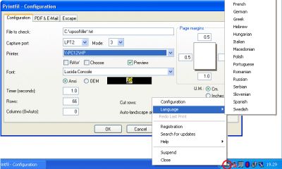 Printfil allows character-based programs printing to any Windows printer, including USB, network printers, faxmodems and PDF writers, even if it is a Dos/Windows application or a Unix/Linux program running on a Windows PC via telnet, without changes to the original applications. You can set your application to print to an ascii file, or you can have Printfil