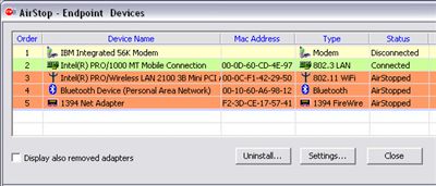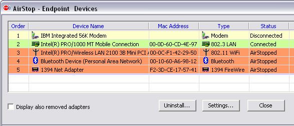 AirStop. Controlled communications adapters include: LAN, WLAN,