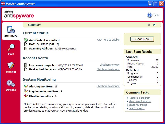 McAfee AntiSpyware Screenshot: