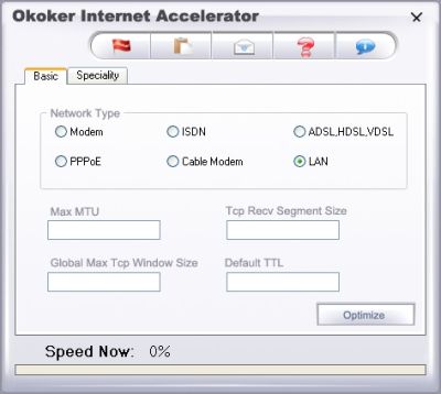 Okoker Internet Accelerator is a internet toolkit, which accelerates your connection speed. You can easily optimize your windows settings and can get a very fast internet or TCP/IP connection. Only you need to do is to go to Settings Dialog and select your connection type. Then it will optimize your computer. Also there is 6 automatic connection types. You can easily choose it. This can help you to not hang behind your downloads. It supports Dial-Up Modem, Cable Modem, PPPoE, ADSL/HDSL/VDSL, ISDN and Lan connections. Accelerates Lan connection speed. Accelerates ISDN connection speed. Accelerates PPPoE connection speed. Accelerates Cable Modem connection speed. Accelerates Dial-Up Modem connection speed. Accelerates ADSL/HDSL/VDSL connection speed. |