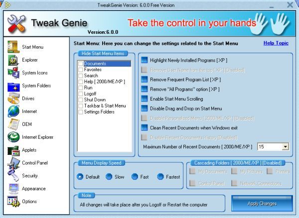 tweak and customize Windows Explorer, Taskbar, Control Panel and