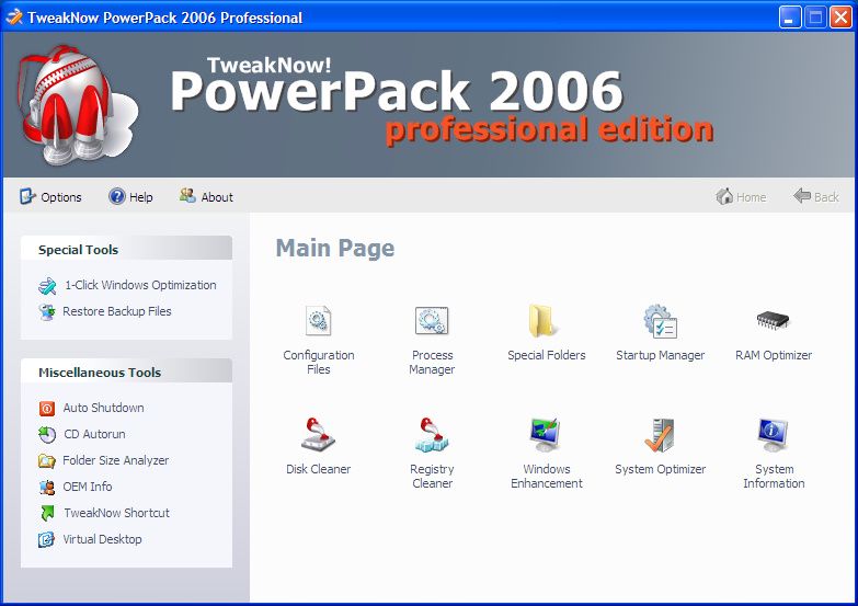 TweakNow PowerPack is a fully-integrated suite of utilities that let you fine-tune every aspect of your computer's operating system and Web browser. The RAM Idle program manages the free memory that is available to run Windows programs. It prevents performance from degrading as you swap files and programs in and out of memory. The AutoShutdown program lets you suspend, hibernate, or shut down your computer after a specified period of time. In addition to saving resources, this program keeps your system more secure by making it unavailable to unauthorized people. The CD AutoRun is an extension of Windows' CD and DVD autorun features, giving you additional options for starting programs or listening to music. The Virtual Desktop program lets you run as many as four custom-designed desktop configurations simultaneously, allowing you to tailor your computer screen to your mood and your work requirements. The suite gives you a complete picture of all aspects of your computer's hardware, including detailed information about your motherboard, processor, video card, memory, hard disk and network. |
