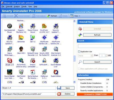 of Smarty Uninstaller 2007 Pro: