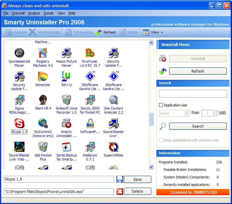 Smarty Uninstaller 2007 Pro screenshot: