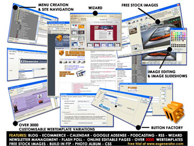 including: Project Wizard, Over 3000 free Web Templates, PodCasting, ECommerce, Interactive FLASH Polls, Newsletter Management, BLOG, Photo BLOG, Online Calendar, Image Slideshows, Build-in FTP