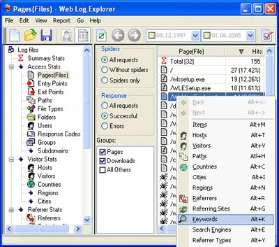 All log analyzers do almost the same. They take your log file, parse it and build reports by grouping or filtering the extracted data. Then you explore resulting tables or charts trying to figure out what is going on your web site, proxy server, firewall etc. Good log analyzers create "multilevel" and cross-linked reports. For example, when you see a page views report, you can click a certain page name and see visitors who accessed this page on any day, or a list of referrers that led visitors to this page. Normally, all these reports are pre-built and statically linked. But only the best log analyzers give you the full freedom of exploring the data. Web Log Explorer from Exacttrend is definitely one of the best. This program creates dynamic reports on-the-fly.