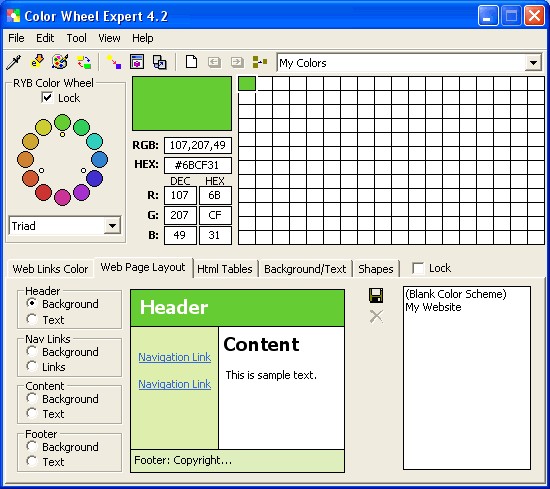 Based on the color wheel and color harmony theory, Color Wheel Expert enables users to select a color, and then have 12 harmonious colors displayed in a circle. With Color Wheel Expert, it's easy to find analogous colors, triads, and complements and split-complements colors. With the flexible color palette and color wheel, users can easily create harmonious color schemes. After users find a color scheme they like, they can save their scheme for future use. With Color Wheel Expert, creating color palettes is a breeze. You can use of the screen color picker, the Windows color dialog, or you can simply input your own decimal or hexadecimal values and use sliders to modify color values. Color Wheel Expert makes it easy to select colors from a 216-color web safe palette, and slider adjustments help users fine-tune the color selection, as well as pick colors from anywhere on the screen and make colors web safe. Color Wheel Expert enables users to convert color values with RGB, HSL, CMY, CMYK and YCbCr using sliders. The RGB Sliders can be locked so they move synchronously to quickly generate a range of tints or shades of the working color. The program also allows users to easily copy color code to the clipboard in RGB, HTML, Delphi, C++, VB and Java format. |