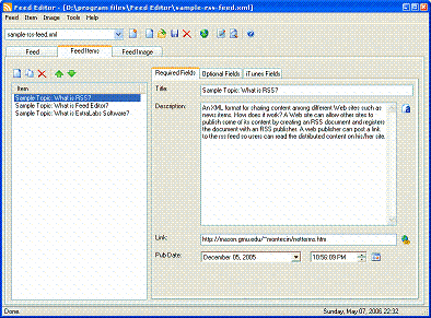 Using Feed Editor you can always support RSS feeds! Feed Editor not only creates RSS feeds but also upload them via FTP. Work with popular podcasting is also supported by Feed Editor. You can upload podcastings as simple as creates them. Using Feed Editor you will always feel free with RSS technology! |