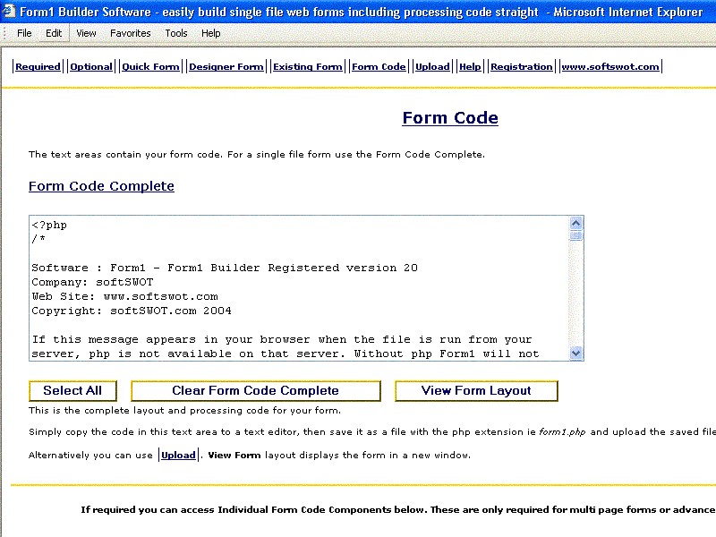 Form1 Builder runs in your web browser and allows you to easily build secure web forms. It provides a single file form (no cgi)